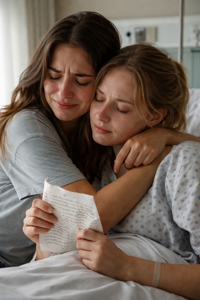 O corredor girou. O som do hospital ficou distante, como se ela tivesse mergulhado debaixo d’água. A mão dela tremia tanto que a carta amassou.