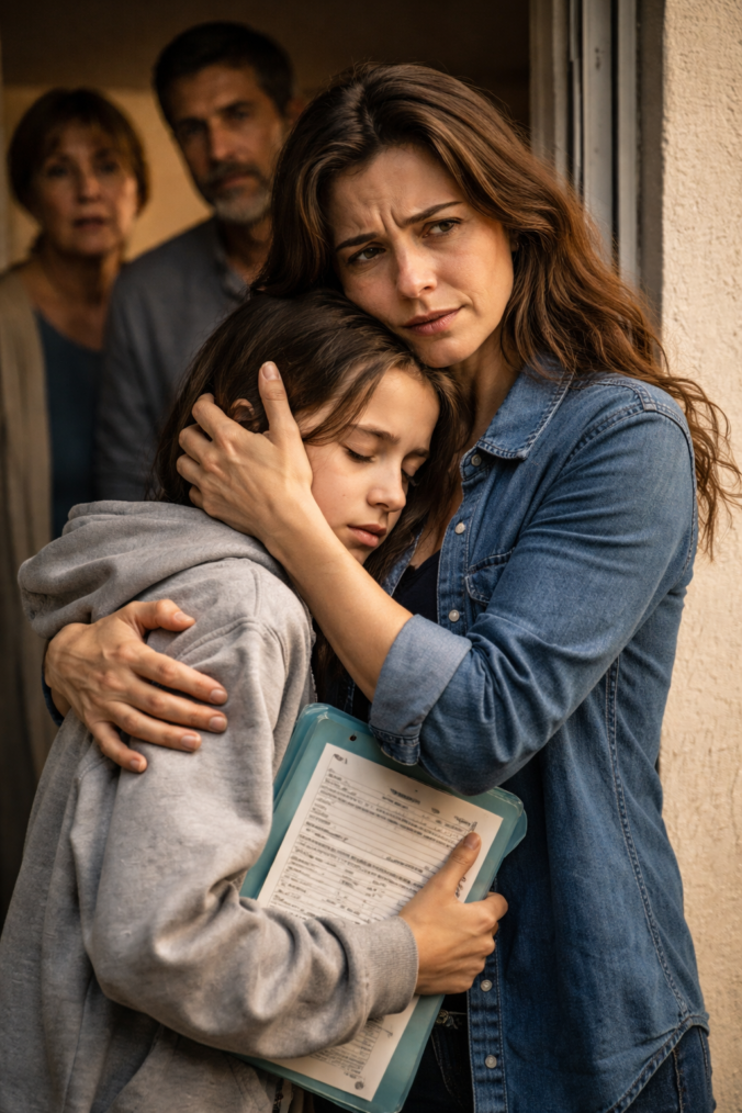 Quando Bia finalmente melhorou e teve alta, Renata chegou em casa destruída, com a menina dormindo no colo, e encontrou um envelope embaixo da porta. Sem nome. Sem remetente. Dentro, só duas coisas: uma foto impressa e um bilhete escrito à mão.
