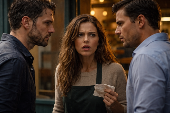 Camila virou o rosto com a força do golpe. Ficou imóvel. A água escorria pelo cabelo, pelo queixo, pela humilhação inteira. Quando virou de novo, havia uma dor funda nos olhos — não só pela agressão, mas porque alguma coisa dentro dela tinha acabado naquele instante.